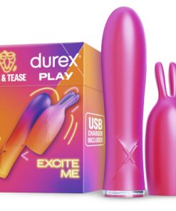 Surf the waves of pleasure with Vibe Tease, Durex’s multi-speed Bunny Vibrator. Mix and match: Use the vibrator alone or attach the stimulator tip to experience a different targeted stimulation!