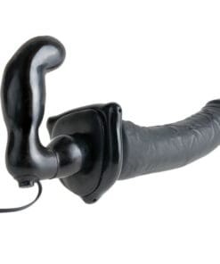 Zagotovite si prostoročno stimulacijo in vroč seks iz oči v oči z Deluxe Vibrating Penetrix Strap-On! Ta dvojni dildo, ki je pametno ukrivljen pod pravim kotom, ostane v notranjosti uporabnika z vsakim strastnim sunkom. Notranji čep je popolnoma nagnjen, da doseže vašo točko G in vas napolni z užitkom. Izjemno raztegljiv pas je popolnoma nastavljiv, da ustreza večini velikosti in obdrži trak na mestu, tudi ko je aktivnost vroča. Močna krogla z več hitrostmi pošilja neverjetne vibracije skozi celotno gred – izberite hitrost, ki je prava za vas in pustite, da tihe vibracije odpeljejo vašega ljubimca!