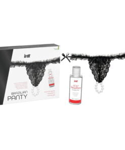 INTT’s Brazilian Panty Black is a sensual lingerie pack with pearls accompanied by a strawberry-flavored water-based gel.