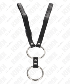 KINK – DOUBLE METAL PENIS RING 3.8 CM TO 5 CM WITH LEATHER BELT 112 CM