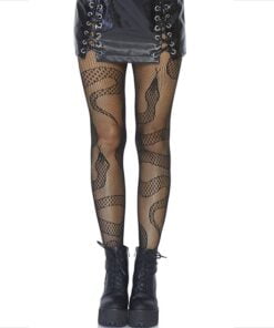 With a stylized snake design along the tights, these garments allow you to express your individuality in a bold and elegant way. The combination of the net texture with the snake patterns creates a striking visual effect that adds a touch of intrigue to your outfit.