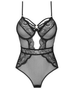 Available in two sizes, the black bodysuit with thin straps encourages with subtle gaps. All thanks to the combination of sexy lace and transparent mesh that leaves little room for imagination.